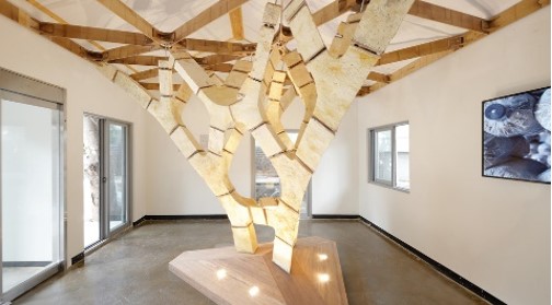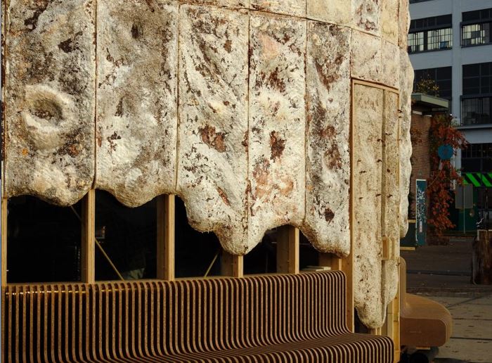 Atelier Sumbiosis, Laureline de Leeuw, Cécile Canel et Jacques Averna, en partenariat avec Procédés Chénel (Paris) et Grown.Bio (Pays-Bas) – Production scénographique : Louis Van Dorsselaer