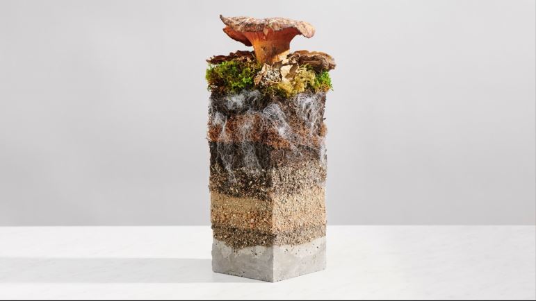 Le mycélium pourrait-il devenir le nouveau « plastique » des designers ? En 2018, lors de l’exposition « La Fabrique du Vivant » au Centre Georges Pompidou, une chaise révolutionnaire fait son entrée dans le monde du design. Conçue par l’artiste Eric Klarenbeek en collaboration avec Dros, cette chaise, baptisée « Mycelium Chair », est vivante : des champignons y poussent ! Elle incarne alors la fusion entre la technologie de l’impression 3D et la puissance de la nature par sa capacité à être autonome après son processus de fabrication.