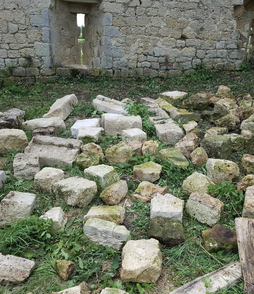 J’ai donc pu expérimenter, la taille de pierres dans la rénovation d’une partie du château de Budos, édifice inscrit aux monuments historiques en Aquitaine. C’est un château du XIVeme siècle dont les pierres ont une histoire passionnante. Ce château est fortifié avec des pierres qu’on appelle aujourd’hui « pierres de Frontenac » ou les pierres qui ont bâti Bordeaux. Pendant longtemps le château a subi de nombreuses destructions et des changements de propriétaires jusqu’à se transformer en un bien national et être démantelé en 1830 pour devenir une carrière de pierres. Les pierres du château participent à la construction du village et des maisons environnantes durant 10 années. Aujourd’hui l’association Adichats, appartenant à l’Union Rempart, œuvre pour la rénovation de celui-ci et j’ai participé à l’un des chantiers qu’elle propose.