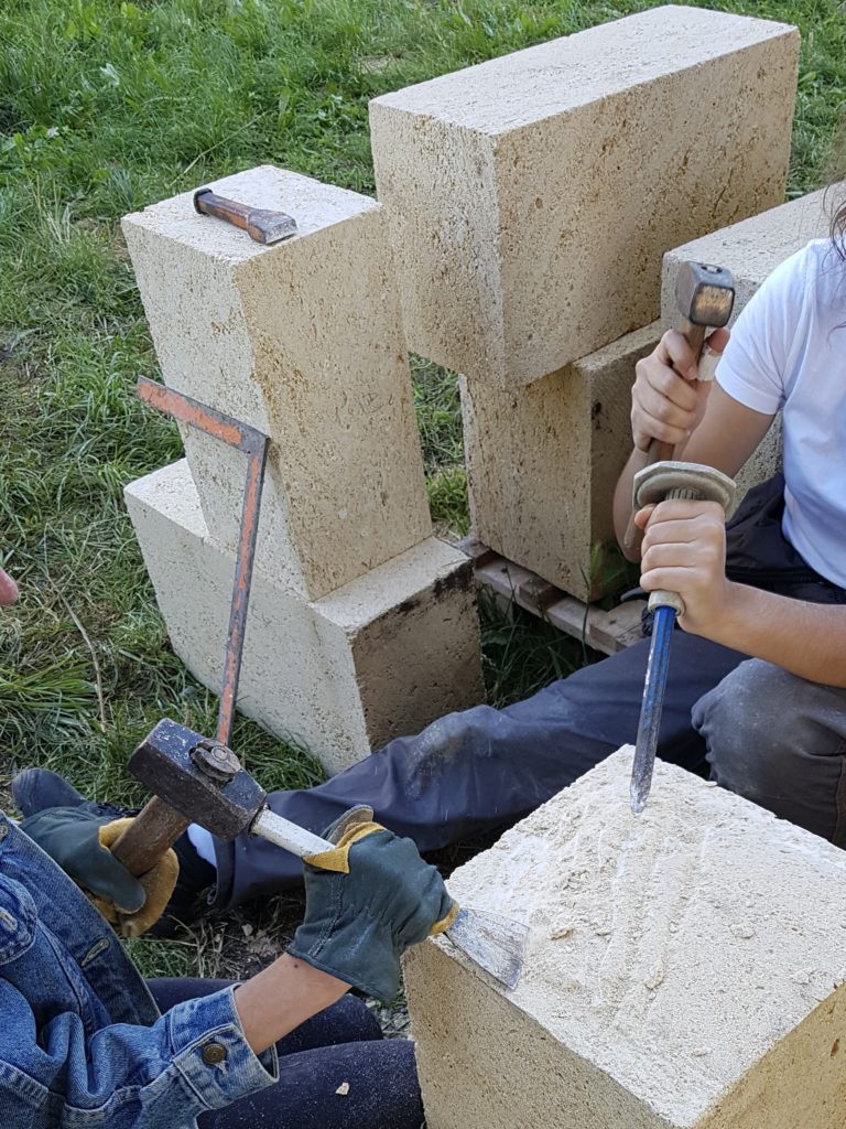 Ce chantier, au-delà d’être enrichissant dans les techniques de taille de pierre et humainement parlant, il est un très bon exemple de circuit court de matériaux. Il présente 2 circuits courts sans intermédiaire et raconte l’histoire d’un château qui s’est vus retiré de la plus grande partie de ses pierres au XIXeme siècle, et qui lui sont revenues comme à leur juste place, 2 siècles plus tard.