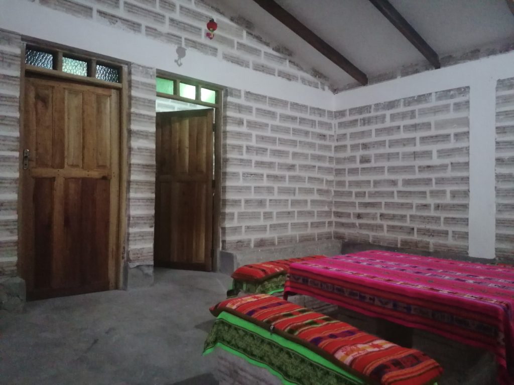 D’un point de vue architectural, les différentes teintes colorimétriques qu’offre le sel donne à voir une lecture en strates, un peu à l’image du pisé lorsque les couches de terre sont compactées. En plus de s’affirmer dans ce contexte paysager si particulier, la dimension brut de la matière et l’assemblage de ces briques si atypiques rend explicite la poésie du lieu. Les teintes ocres de la matérialité paraissent d’autant plus apaisantes, au regard des menuiseries en bois qu’offre l’intérieur du bâtiment et des tissus colorés, si propres aux cultures des pays andins.