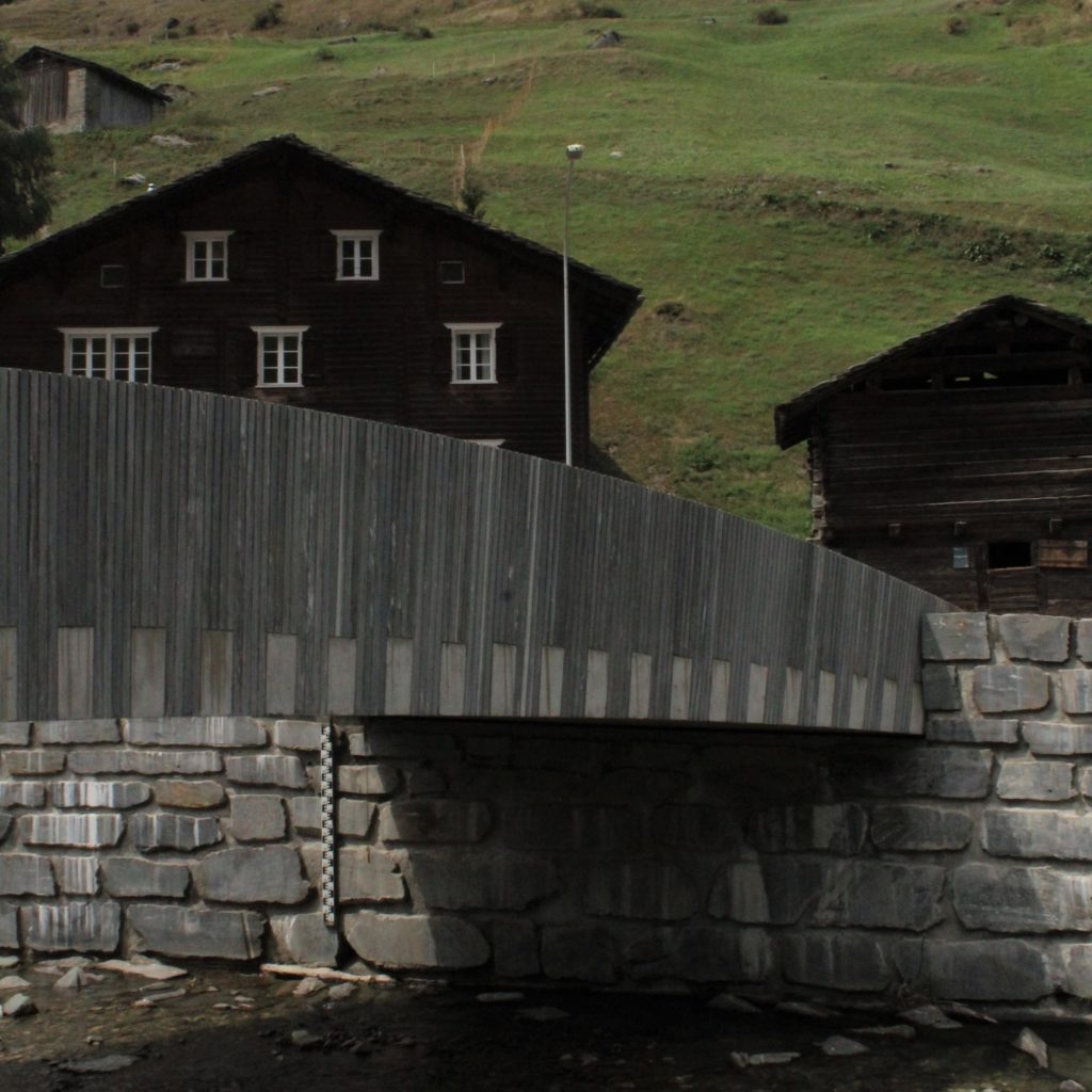 Le choix du bois de l’ouvrage, à savoir le mélèze, fait directement lien avec la proximité immédiate des forêts de résineux et donc les ressources présentes in situ. L’usage du bois, tant sur les constructions traditionnelles du hameau que sur les réalisations plus modernes comme c’est ici le cas de la chapelle, fait par ailleurs gage de pérennité grâce à ses qualités intrinsèques au fil du temps.