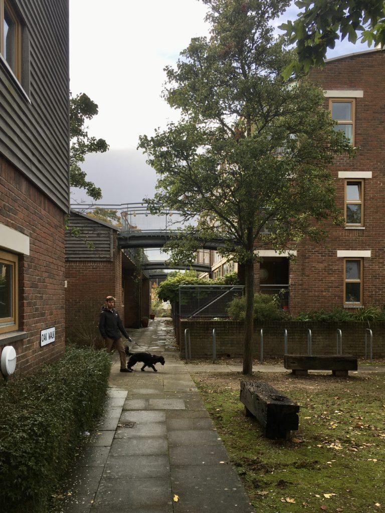 C’est incroyable, à peine entré dans l’ensemble d’habitations et tout est devenu plus calme. Le bruit du trafic de la route principale se ferait presque oublier. La ballade dans les allées de ce petit quartier à un air de campagne.