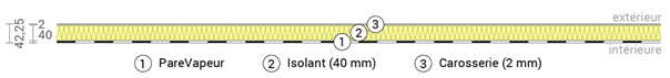 Un bon isolant c’est la combinaison d’une conductivité thermique faible – pour l’isolation de la chaleur l’hiver –  d’une densité et d’une capacité calorifique élevée, afin de retarder la transmission du flux de chaleur dans le véhicule l’été ( déphasage et inertie thermique ).