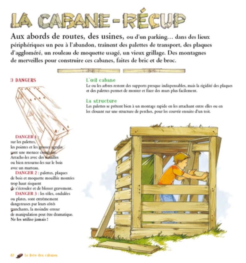 Avec ce guide, un petit peu de récupération et le tour est joué ! Les 95 pages vont du mur d’escalade, aux meubles de maisonnette, en passant par la fameuse balancelle ou encore le vieux jeu de palets. Que des pistes à explorer pour ensuite développer ses propres modèles de jeux à partir du bois récupéré.