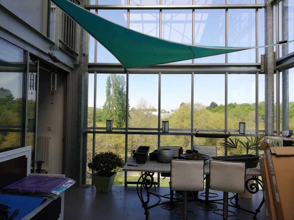 La serre bioclimatique d’un T4 à Boréal qui témoigne de l’appropriation habitante pour lutter contre la chaleur ©Orlane Huitric