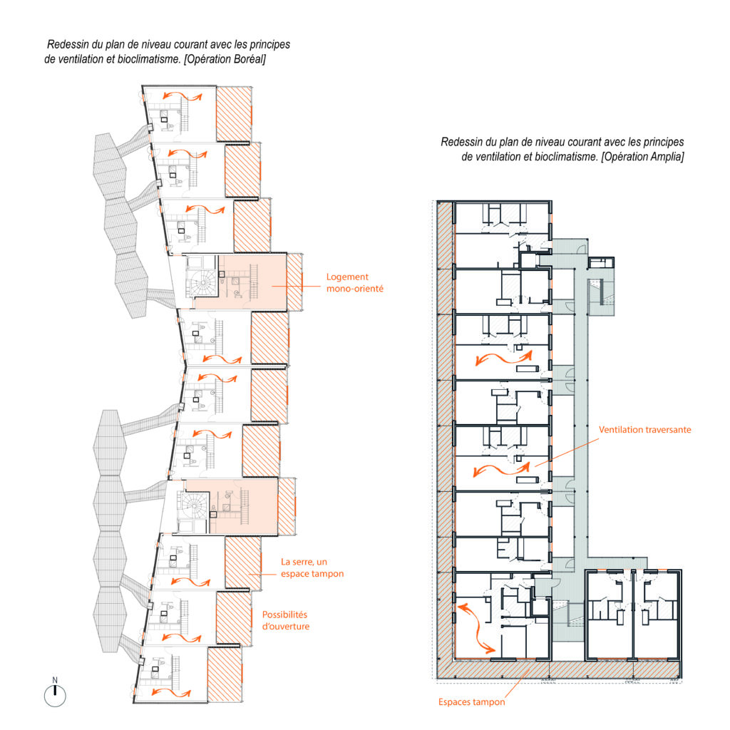 Le confort d’été définit l’ensemble des paramètres qui permettent une situation optimale au sein du logement, évitant ainsi les phénomènes de surchauffe. Mais de quelle manière les choix d’éco-conception tendant vers l’économie de moyens pour l’opération Boréal ou vers la technologie environnementale concernant celle d’Amplia jouent-ils sur le degré de confort d’été ?