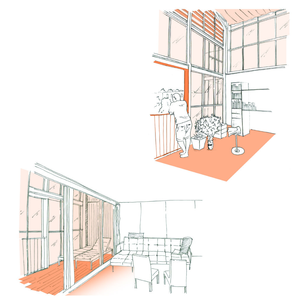 A l’inverse, tous les habitants de l’opération lyonnaise qui jouissent des bénéfices d’un jardin d’hiver, semblent apprécier fortement cet espace et les impacts thermiques qui en découlent : « Au niveau thermique, c’est génial : quand il fait froid, on ferme et c’est super bien isolé avec le triple vitrage. […] C’est une valeur ajoutée, on mange dehors même en février, dès qu’il y a du soleil.»