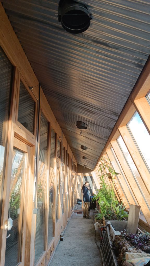 « Aujourd’hui, avec Magali, on se sent comme les pilotes d’un vaisseau (de terre), comme les capitaines d’un navire, vraiment ! Notre maison c’est comme un gros bébé qui a besoin d’attention pour pouvoir fonctionner. Je te raconte mon rituel du matin : je me lève et je vais vérifier l’eau des plantes, voir si elles vont bien. Après, on ouvre toutes les fenêtres (parce qu’il fait trop chaud – et on est en pleine hiver) et les puits de ventilation pour que la maison respire. Ensuite, on va dans la pièce technique regarder le niveau des batteries ; on contrôle la réserve d’eau et on surveille si les filtres sont propres. Ces rituels ça me donne l’impression de vivre à bord d’un sous-marin ou d’un vaisseau spatial. »