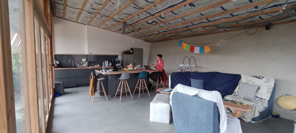 « L’année 2013 a été plus qu’enrichissante, on a fait d’intenses recherches techniques au travers de livres, de vidéos sur les earthships. On a fait de nombreuses visites. On a rencontré énormément de personnes de différents corps de métiers. En 2018, après avoir visité plus de 70 terrains on a finalement trouvé celui qui nous convenait. Le chantier participatif a commencé en 2019 et en septembre 2021 nous avons emménagé. »