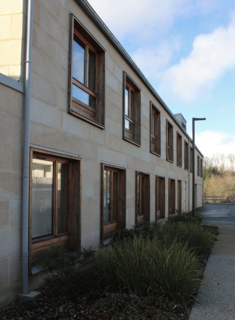 C’est lors d’une balade au sein du centre-bourg breton duquel je suis originaire que l’une des façades en pierre de la mairie d’Ergué-Gabéric, m’a interpellée. L’édifice était alors encore en fin de chantier et la période de confinement avait, comme partout ailleurs, mise toutes les filières du bâtiment à l’arrêt. La lumière de fin de journée mettait en valeur l’appareillage des blocs de granit qui se mariaient parfaitement avec le mélèze des menuiseries extérieures. C’est ainsi presque 3 ans plus tard, que je reviens sur ces lieux afin de mettre en parallèle la perception que m’avait évoqué cet édifice pour enrichir ce regard à la fois sur la dimension constructive et usuelle.