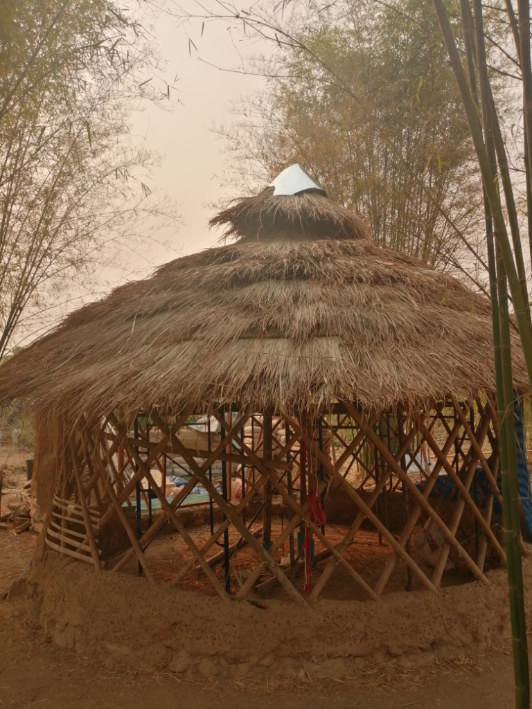 . Une Yourte en bambou, torchis et fondation de réemploi