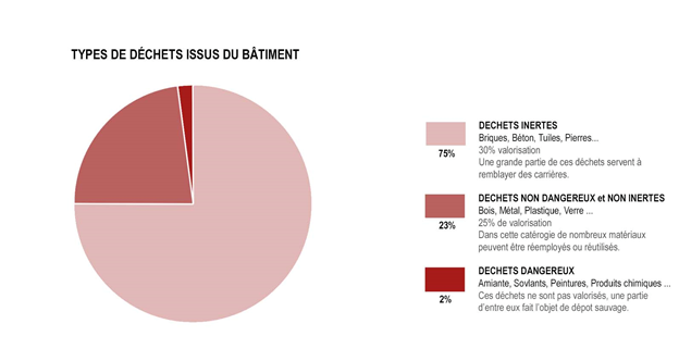 Aujourd’hui, plus que de revaloriser les déchets issus du bâtiments, l’objectif et d’amoindrir les quantités de déchets, de « vider les bennes ». Et ceci n’est possible que par la réutilisation et le réemploi. Ces pratiques sont de plus en plus encouragées par les institutions.