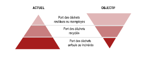 Voici un schéma représentant les objectifs de valorisation des déchets du bâtiment[3] :